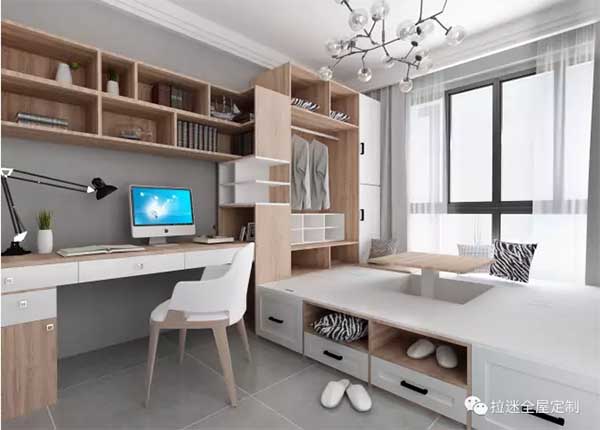 在空间有限的房间里做个榻榻米,一体化设计,同时兼备学习、睡觉功能,让书房比别人家更静谧动人,满足求知欲的同时,享受这安静而又美好的氛围。