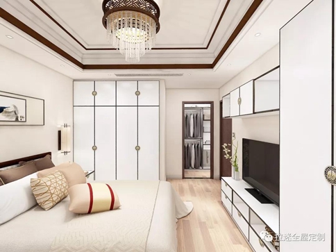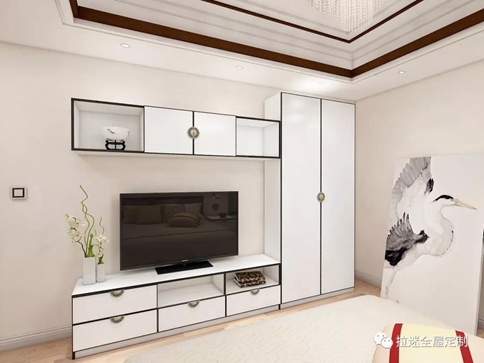 卧室中,床头柜、衣柜、电视柜都是方方正正的设计,让卧室不仅明亮宽敞同时更显整齐,有条不紊。