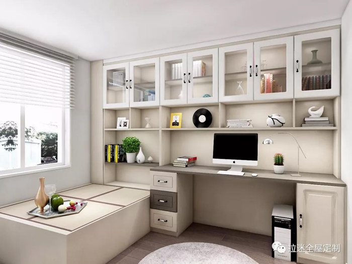 结合户型和采光来判断书桌的朝向以后,你就可以确定将组合式柜体放在床头还是床尾。