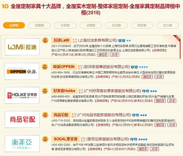 这5家是目前全屋定制行业里面的佼佼者,不管是从行业口碑还是产品知名度都是相当不错的。全屋定制品牌的最新排名点击了解