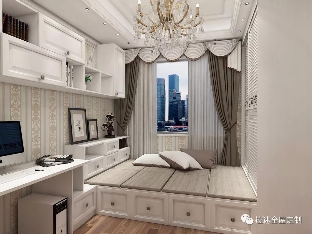 很多人说羡慕有个书房的人,但这话不全对,他们应该羡慕那些在书房装了榻榻米的人。一本正经地办公学习难免枯燥乏味,犯困之时有张小床休憩一下,弹一曲吉他或看一则趣文,都不错。