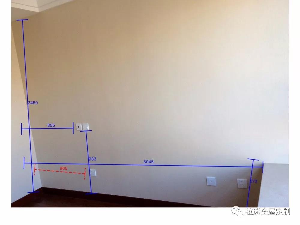 可以看到,拉迷派出设计师进行上门量尺时,整个房间还是空荡荡的。设计师对房间的空间大小进行一个细致的测量,这一点决定未来家具安装的实际效果。