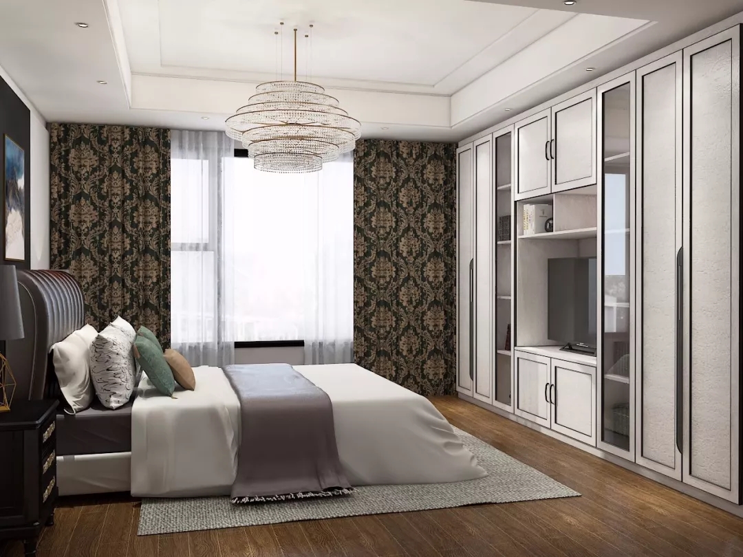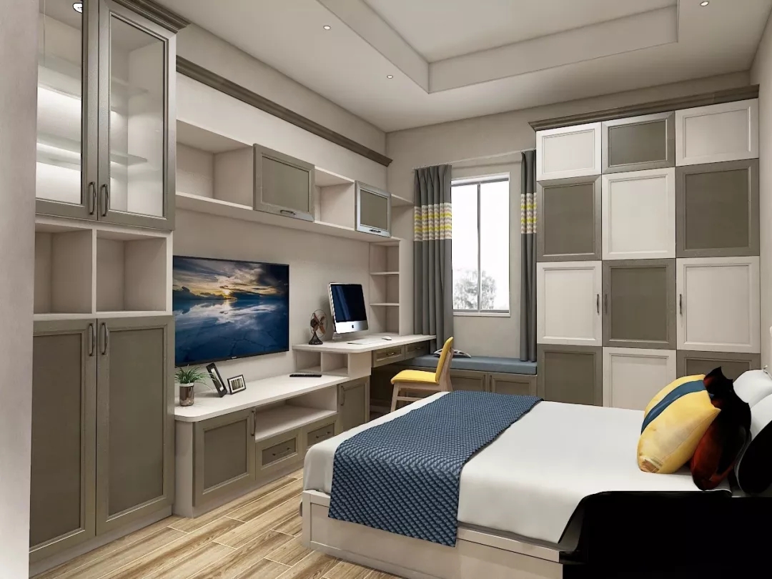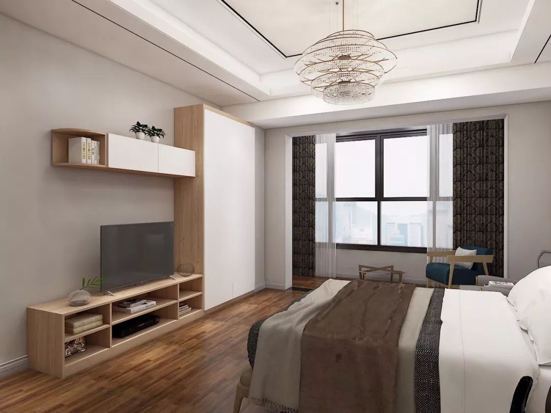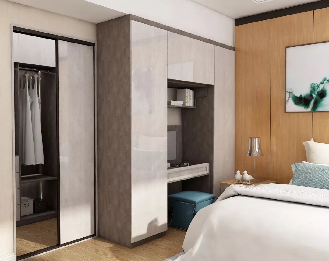 同样,定制衣柜还可以搭配电视柜。从衣柜侧面延伸出吊柜和地柜,再摆一台电视机。不仅让卧室在视觉更加灵巧鲜活,同时也开启了赖床刷剧的幸福生活!