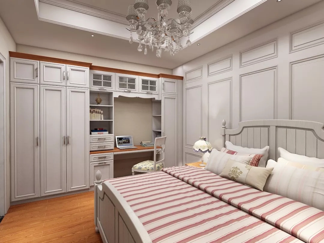 根据卧室的不同格局,可以在衣柜左侧靠门处,空出一点的空间,打造一个简单而实用的梳妆台。有隔板、抽屉、地柜不同收纳方式,满足做一个精致女孩的愿望!