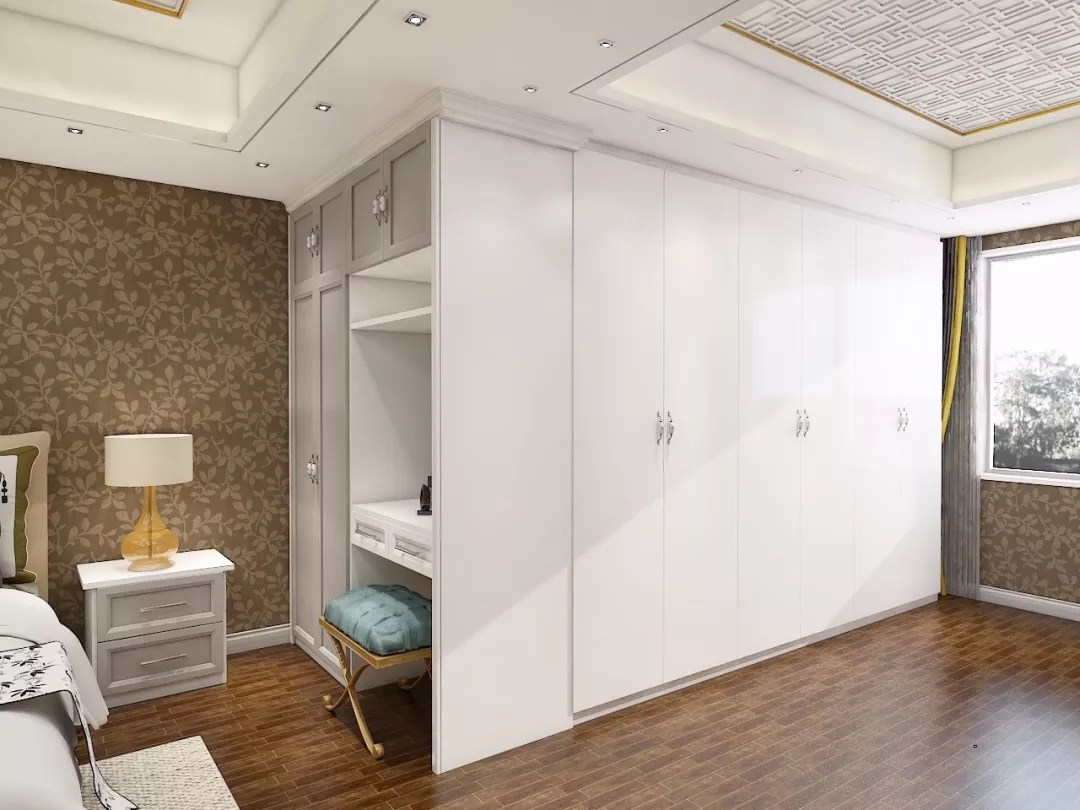 也可以在衣柜中间空出一块,根据自己的喜好,设计梳妆台的布局。定制衣柜从来都不是墨守成规的盒子,而是让生活充满乐趣的精灵!