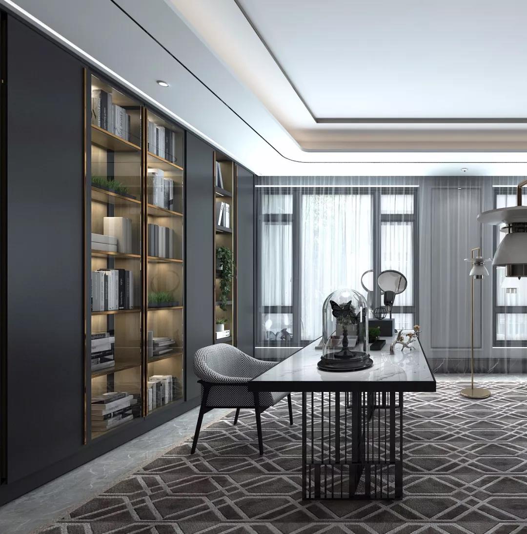 轻奢金属、玻璃元素与板门的视觉张力,虚实交替,便于使用者快速的找到书籍。灰色的门板更是彰显近邻天地壮阔,厚载心中盛境。