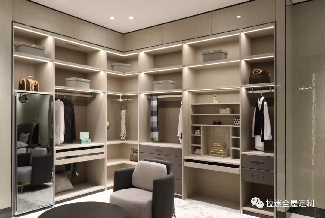 意式极简开放式衣帽间。