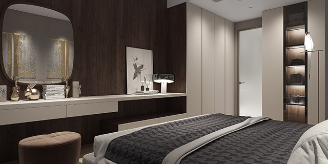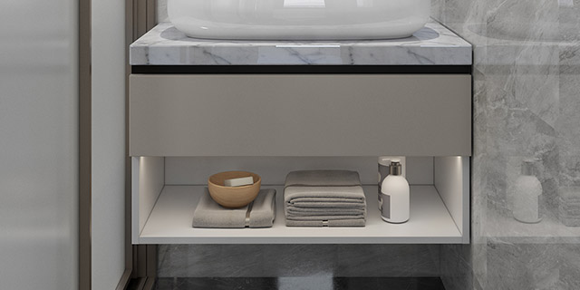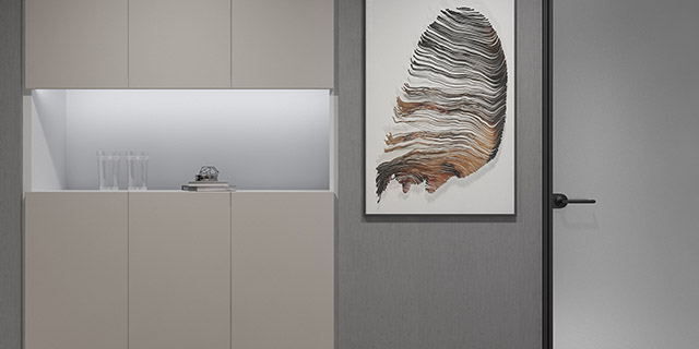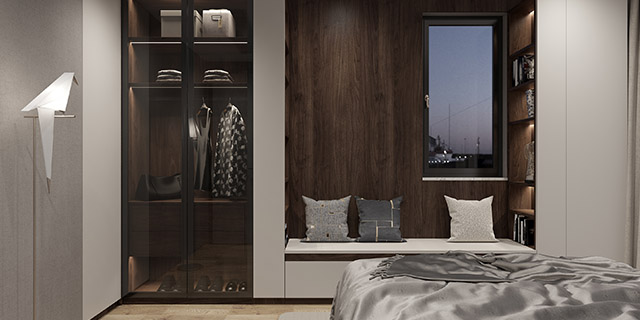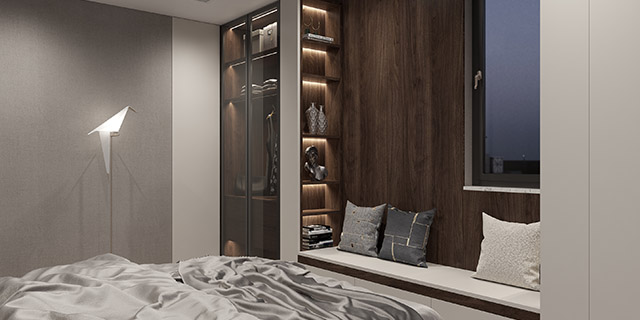 莫尔德与沙漠灰的质感提升了整个飘窗柜高级感。