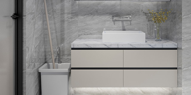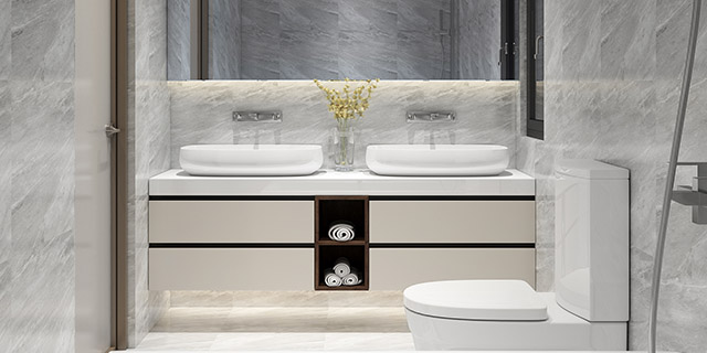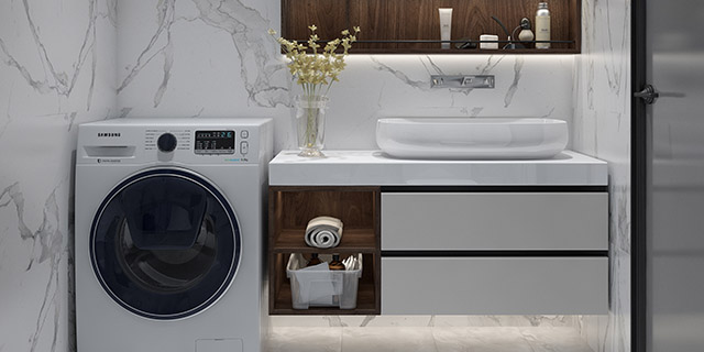 墙面的大理石纹理瓷砖更显得大气整洁。