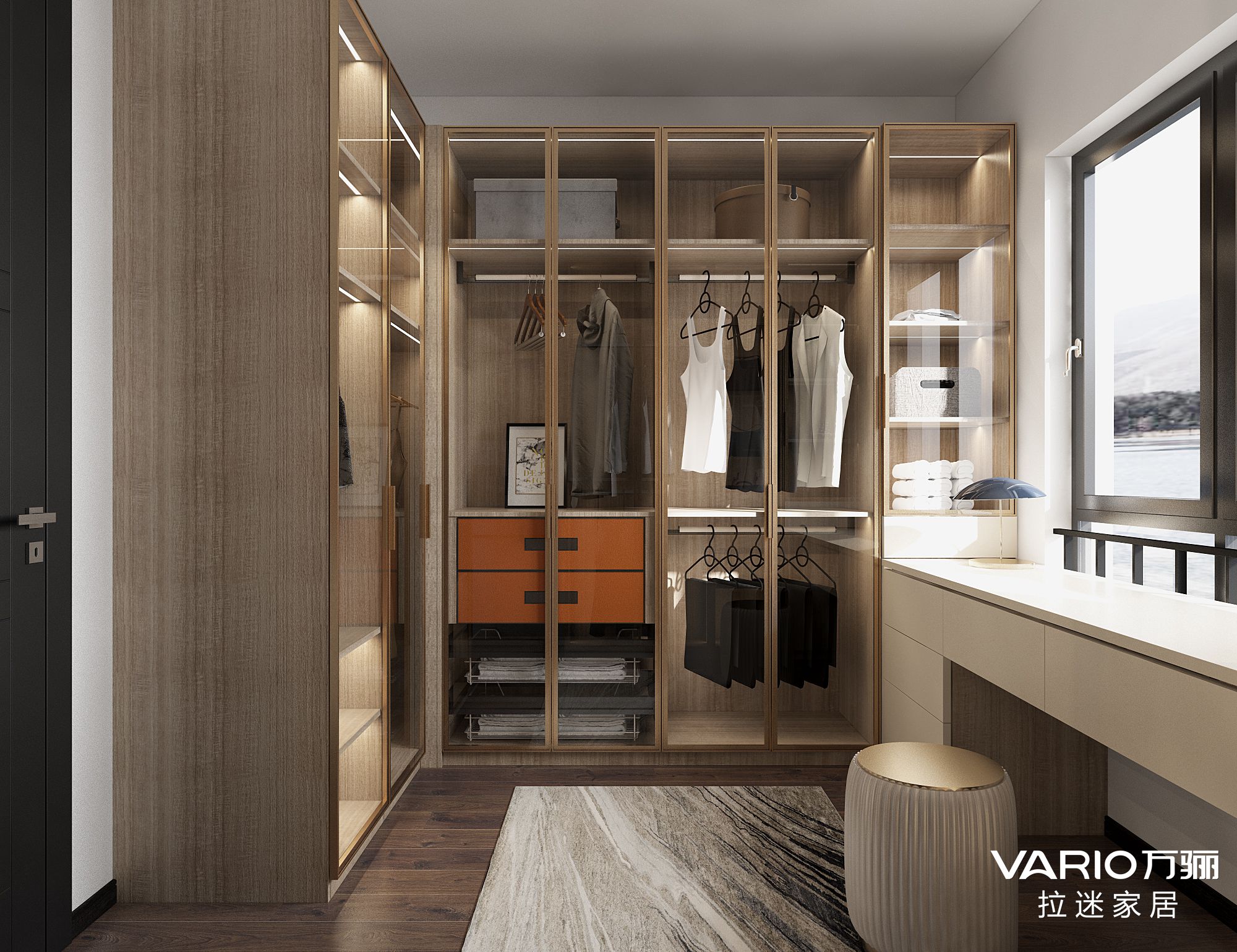 包括整体衣柜、整体书柜、酒柜、鞋柜、电视柜、步入式衣帽间、入墙衣柜、整体家具等多种家具。