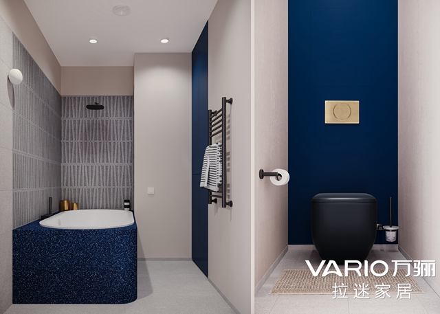 卫浴内装修简洁、干净,浴缸的设计自带高级感,洗漱台的设计也别有洞天,